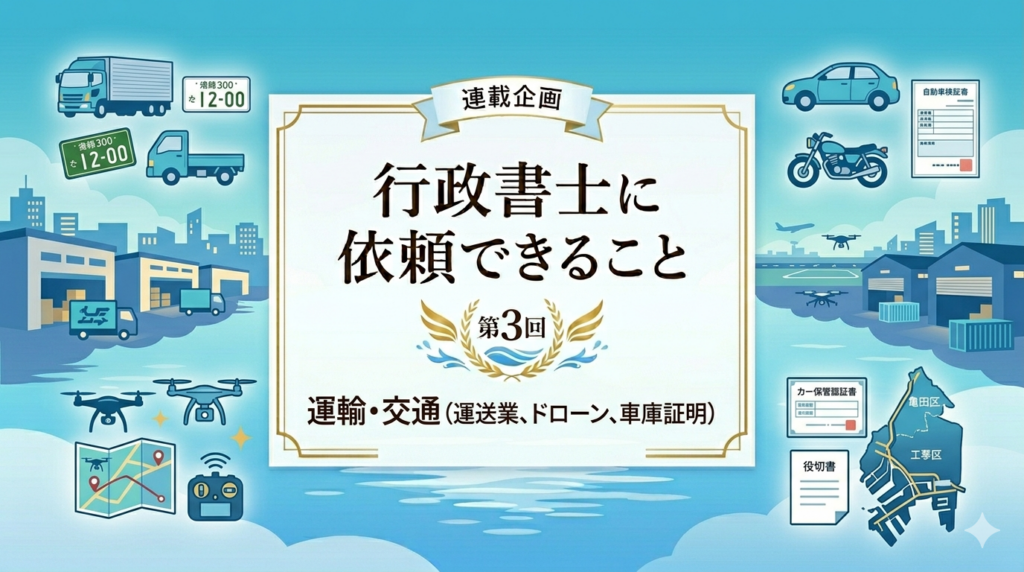 【行政書士に依頼できること③】運輸・交通編(物流からドローン、日々の車の手続きまで)