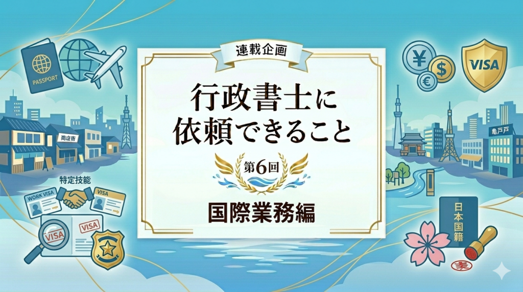 多文化共生の街を支える「在留資格」の手続き 連載第6回は、日本で暮らす外国人の方や、外国人を雇用する企業様にとって非常に重要な「国際業務」について解説します。 近年、江東区の亀戸や墨田区の錦糸町はもちろん、江戸川区の平井や葛飾区の新小岩エリ... -